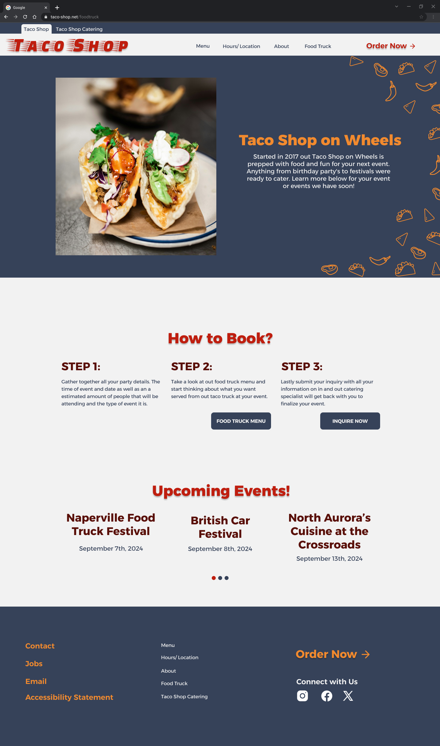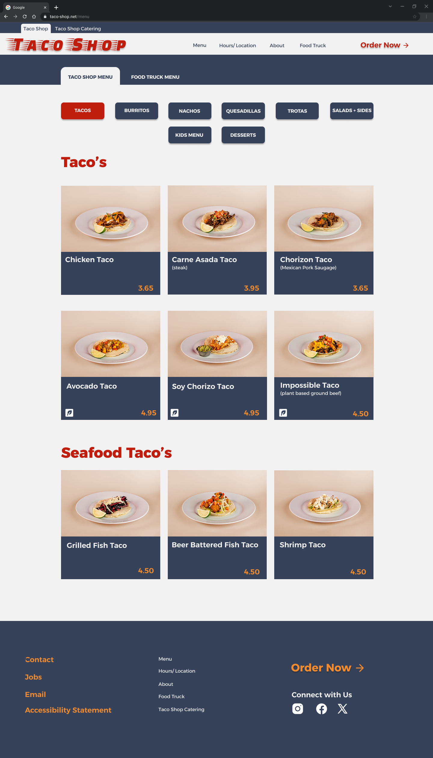 The Taco Shop is a website redesign for a local Mexican restaurant and food truck’s online presence. The project serves as a full brand refresh to back the shop’s reputation and update its digital storefront, making the site feel authentic while ensures that customers can easily access the menu and truck schedule from any device.